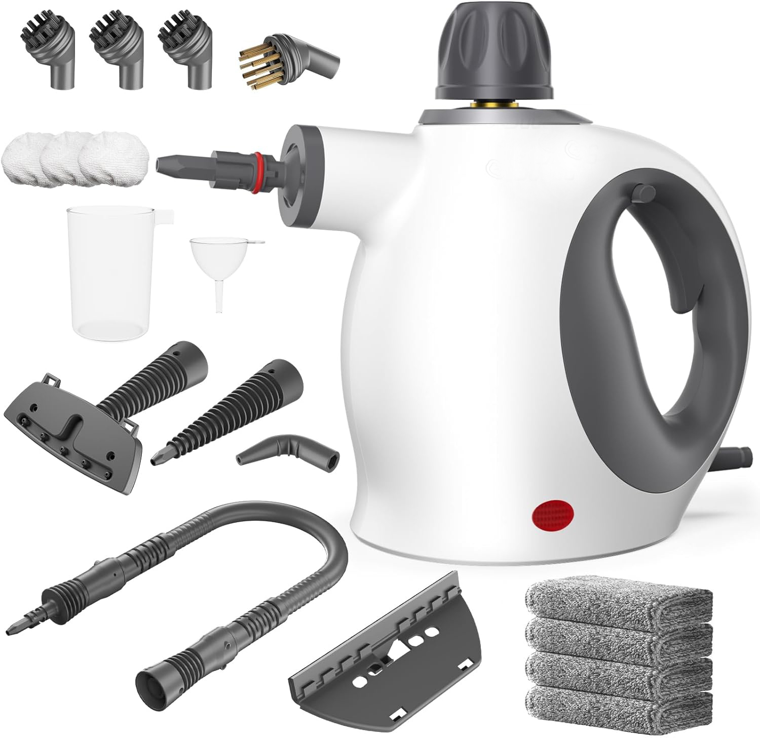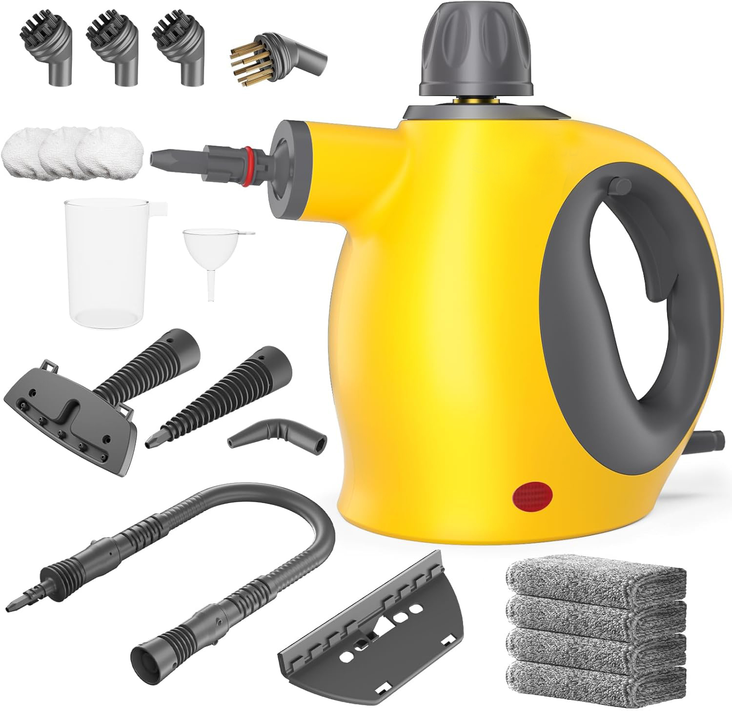 Comes with a complete 19PCS all-purpose accessory kit including brushes, nozzles, crevice tools and multi-angle adapters for all cleaning scenarios. Designed with safety lock to prevent accidental steam release and ergonomic handle for comfortable long-time use. Safe for baby areas, pet zones and food contact surfaces. Backed by lifetime warranty and trusted by 500,000+ users.