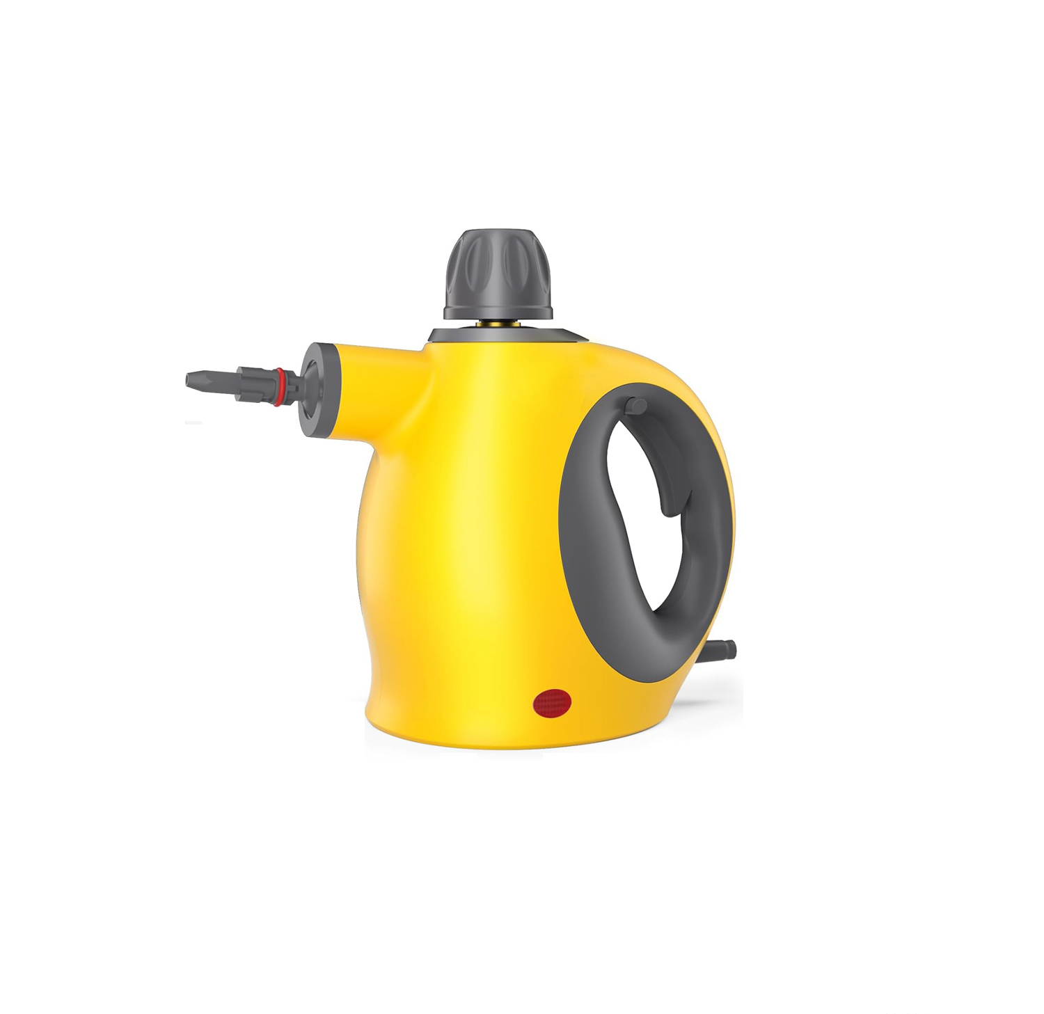 Multi-purpose handheld steam cleaner with 500mL water tank (350mL recommended for best performance). Heats up in 3-5 minutes and provides 10-15 minutes of 230°F high-pressure steam for effective chemical-free deep cleaning. It dissolves grease, grime and stubborn stains on kitchens, bathrooms, tiles, carpets and car interiors without any detergents or residues.