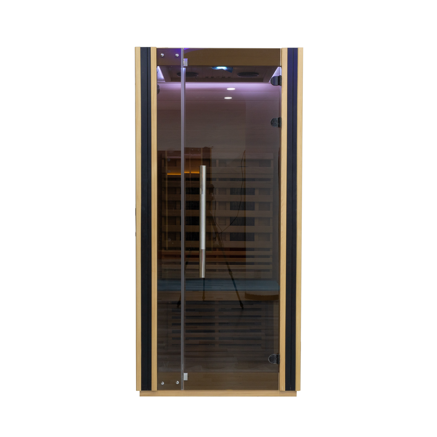 1 Person Full Spectrum and Carbon Heaters Indoor Wooden Small Infrared Sauna, a compact premium wellness solution crafted with premium solid wood (Hemlock/Red Cedar/Spruce optional).