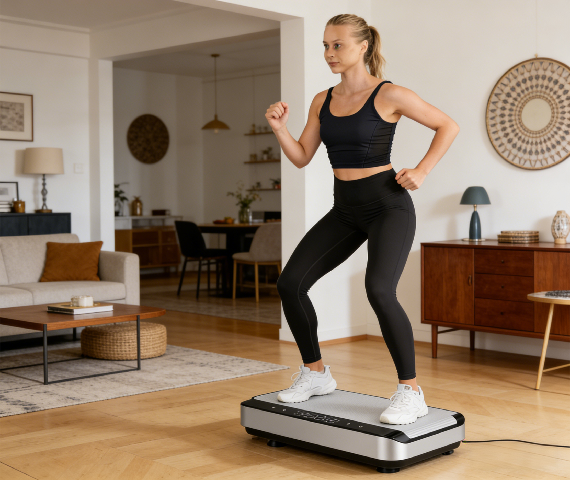 This compact, silent vibration plate fits seamlessly into your home, office, or travel routine. It enhances jogging, walking, and core workouts, improves circulation, and reduces stress for full-body recovery.