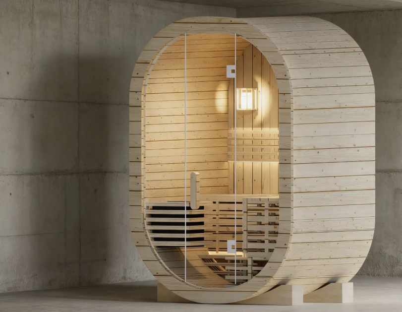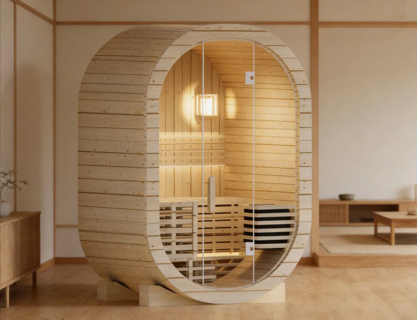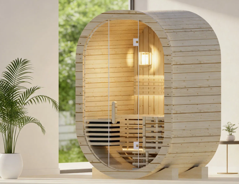 Outdoor Spruce and Red Cedar Oval Sauna Room