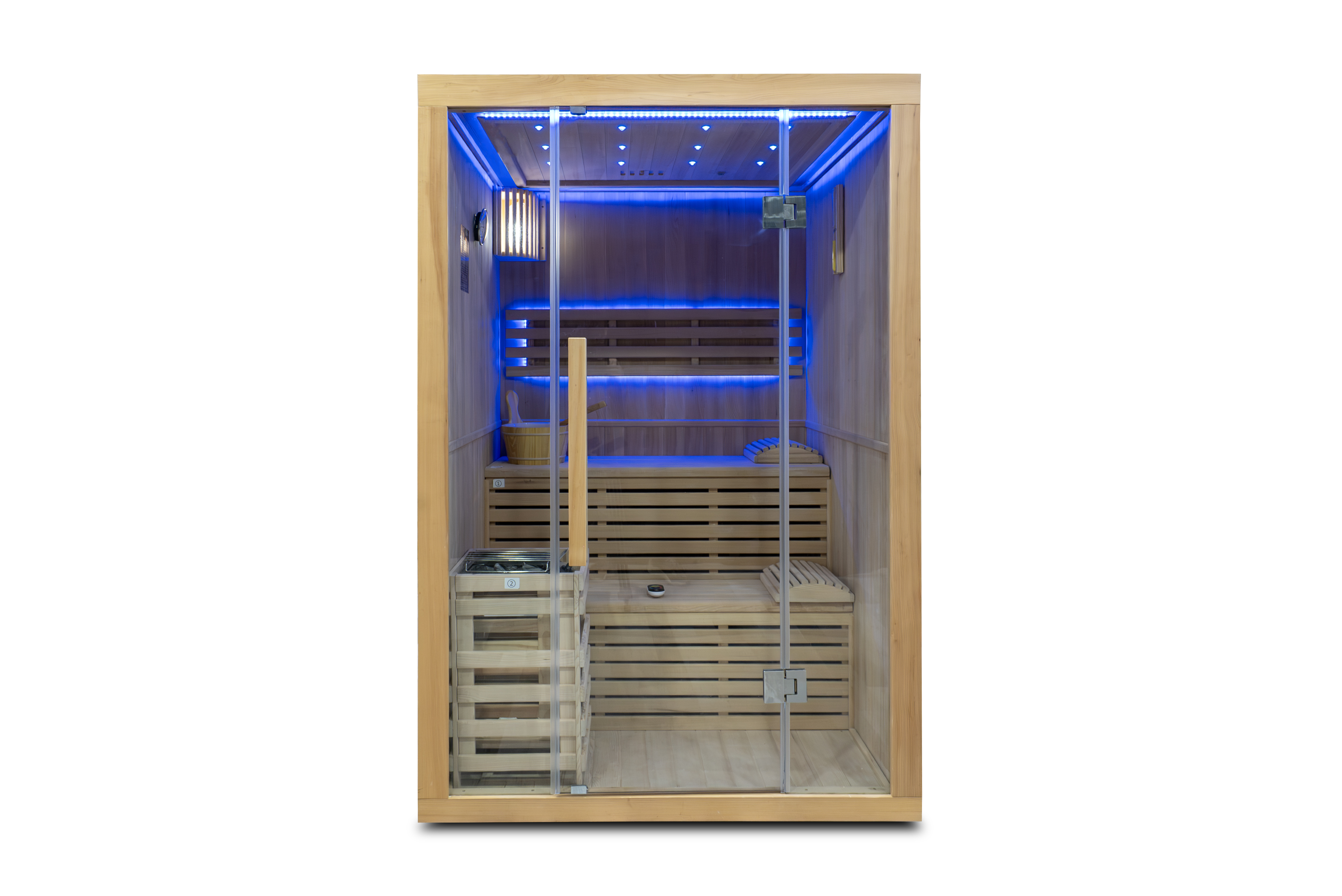 Modern Solid Wood Indoor 2 Person Harvia Electric Heater Hemlock Steamer Sauna