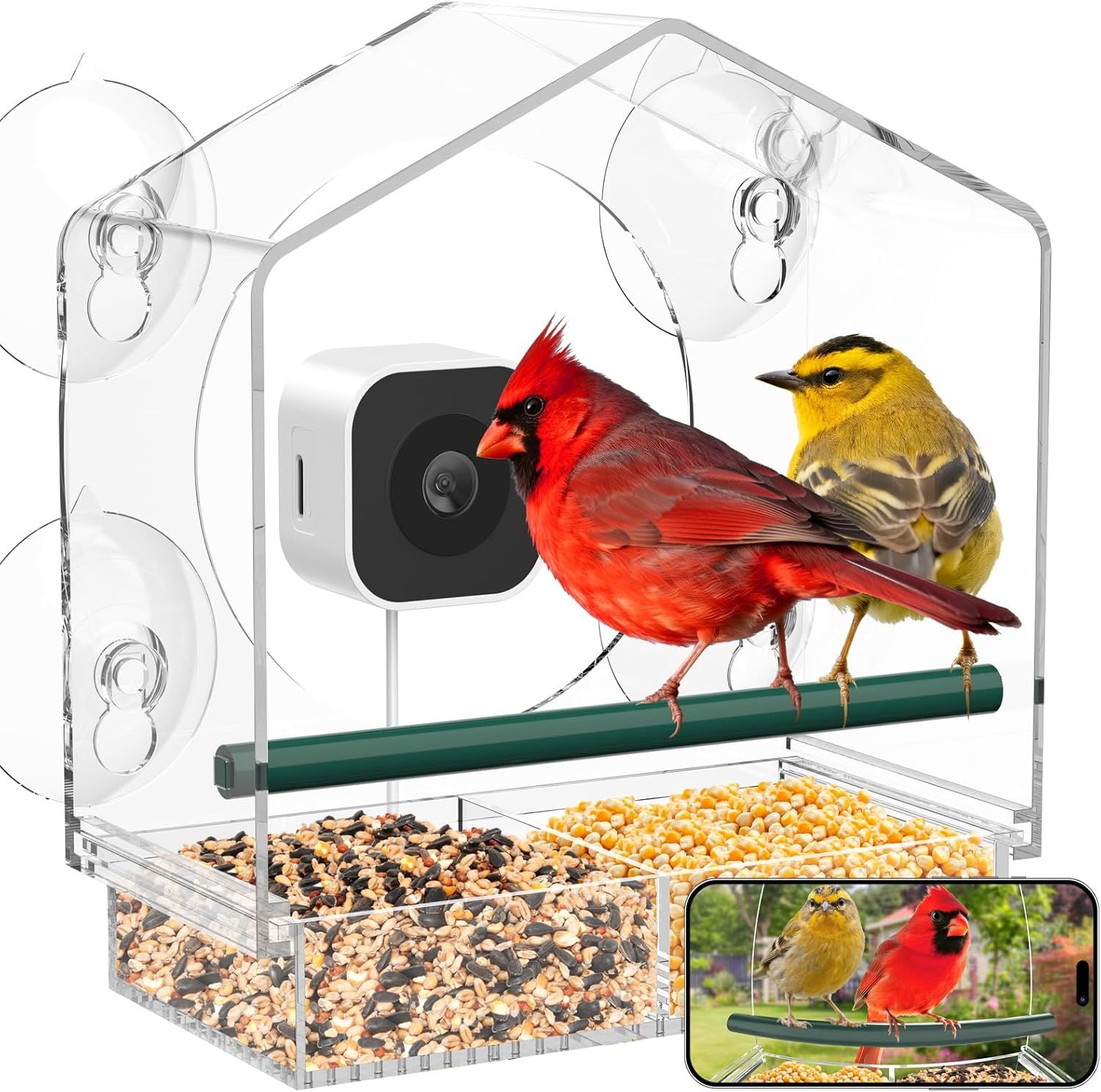 Window Bird Feeder with Camera, Wild Bird Feeders for Outdoors