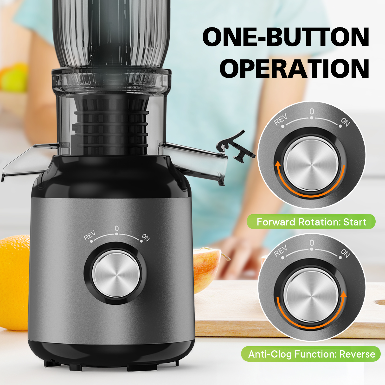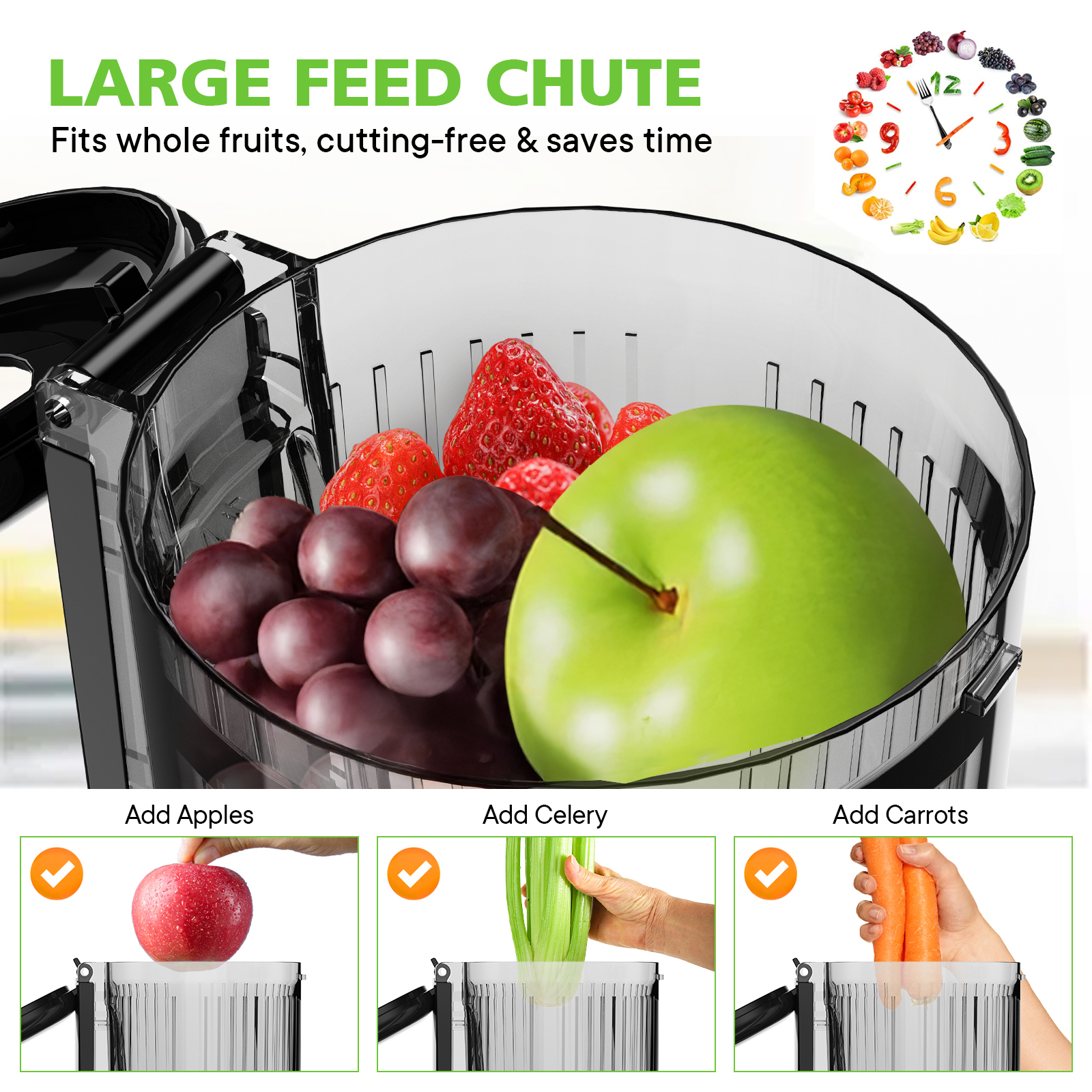 | Type | 5.3" Cold Press Juicer | Feature | Large Feed Chute |