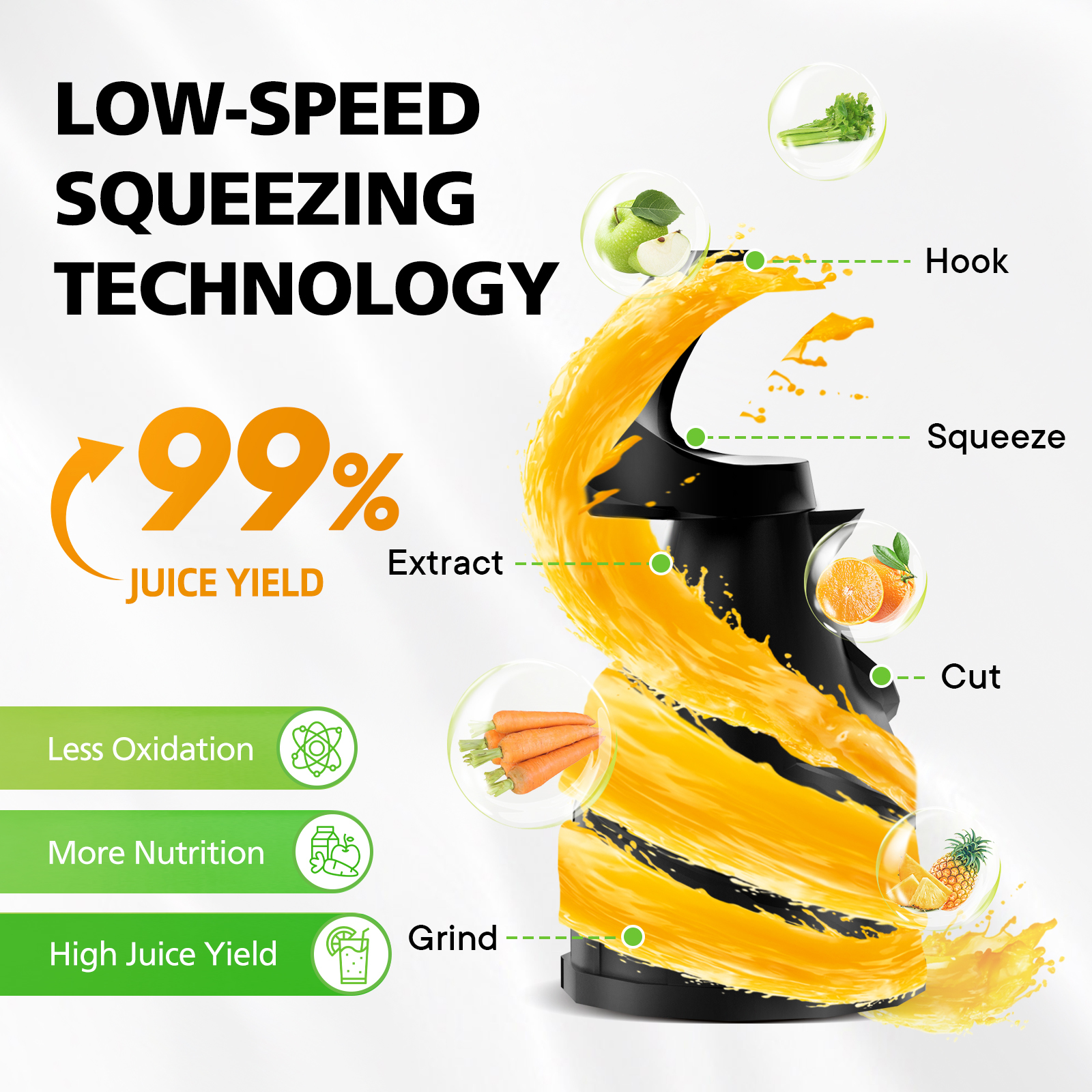Masticating cold press technology for maximum nutrient extraction