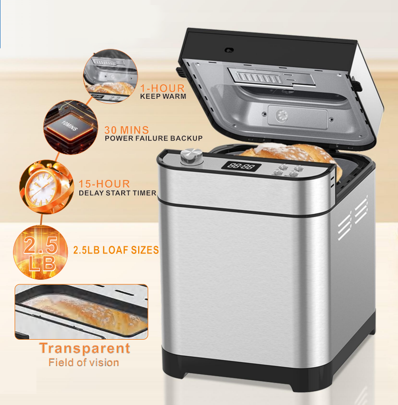 Intelligent Bread Maker 3 Crust Choices 15 Hour Delay and Auto Keep Warm